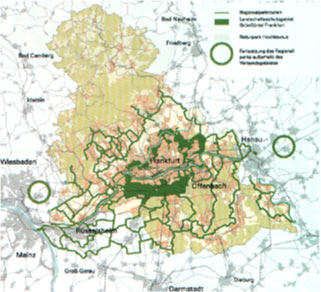 nätverk av grönområden rund storstaden Frankfurt.![]() |