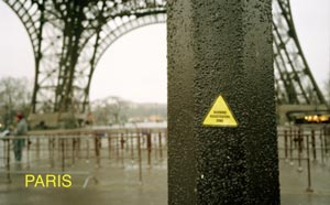 klistremerker med advarselsgult og svarte bokstaver som advarer